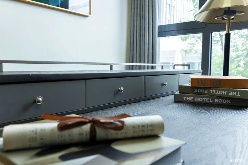 站在书房门口,都被书桌强大的气场震撼,极具建筑美学的书桌四角与实木材质质感显露出空间的大气与张力,以减法设计概念,去繁求简,却在功能收纳上绝对满足日常所需,回归生活本真,绝对是书房不可或缺的书桌。