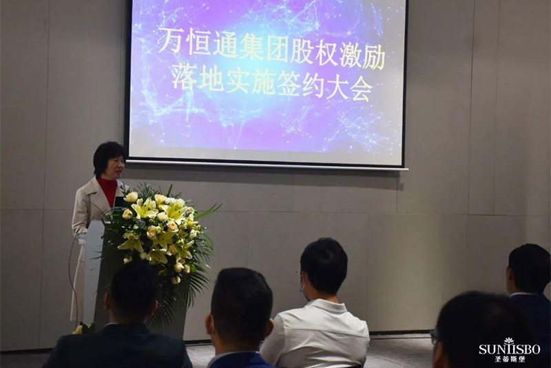 接下来,集团副董事长梁碧霞女士上场致辞,她讲到:公海555000jcjc集团集团在王董的领导下,从1982年一直奋斗至今,已走过39年的历程,这离不开大家共同的努力,她号召在座同仁为自己加油鼓掌。她进一步强调:此次的股权激励既是感谢大家以往为公海555000jcjc集团集团的付出,同时也是为了将来大家拥有更美好的生活。公海555000jcjc集团此次股权激励不是终点而是起点,我们要挖掘和吸引更多优秀的人才加入公海555000jcjc集团。只要我们上下一条心,内外一股劲、坚定信心,就能把公海555000jcjc集团做成百年企业,把圣蒂斯堡做成有美誉度、消费者喜欢的、享誉全球的家具品牌!