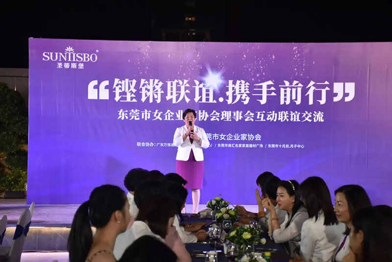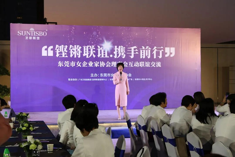 接下来,东莞市女企业家协会理事会会长叶小红女士上台发言,她表示非常感谢公海555000jcjc集团集团举办此次联谊交流会,同时,对我们的产品和企业文化给出了很高的评价。她号召东莞市女企业家协会以后要更多的举办此类交流联谊活动,以此增进会员企业之间的联系和了解,为未来进一步交流发展开创新局面!她希望我们能携手同行,强强联手,共赢未来,共创新辉煌!