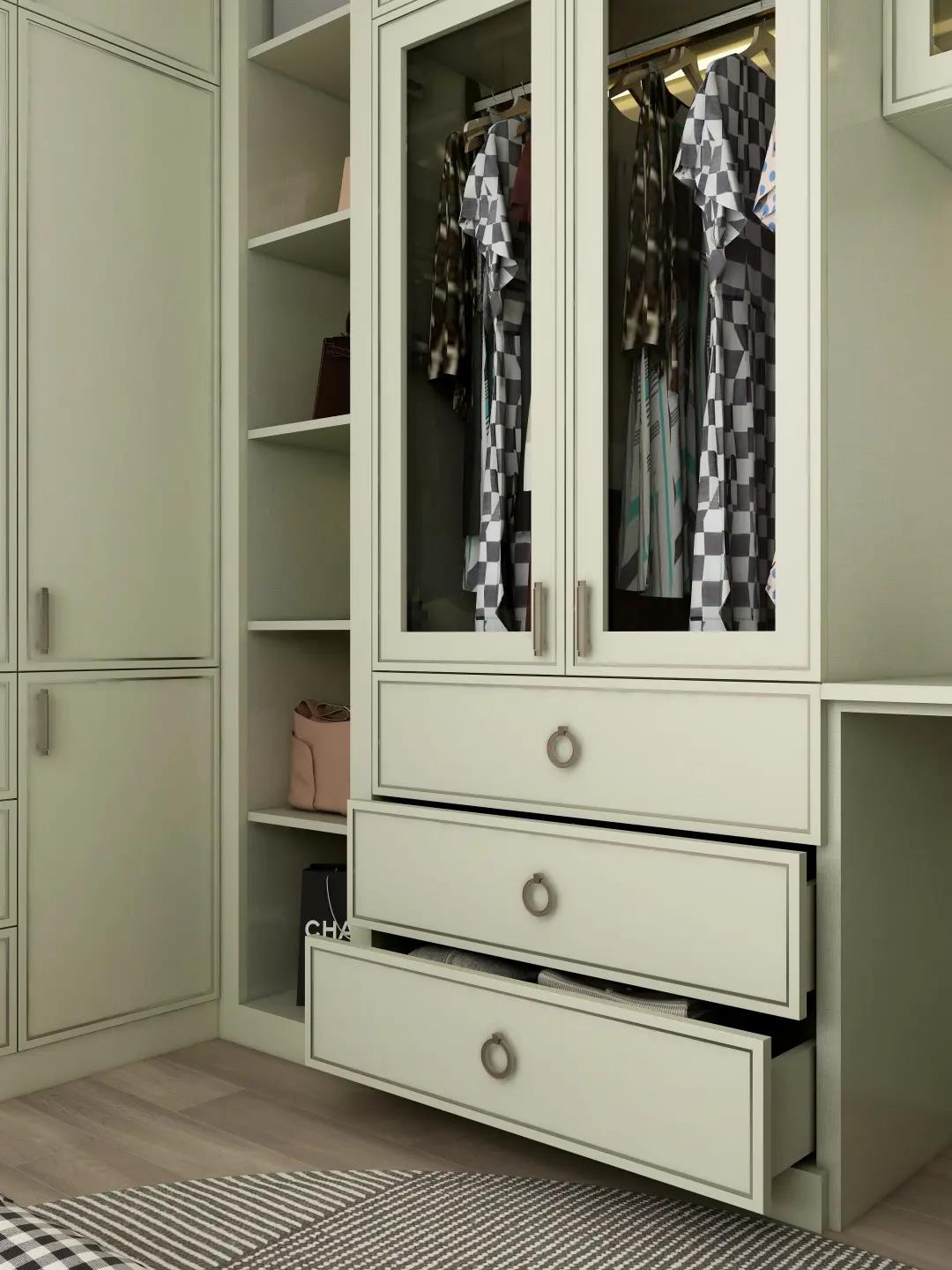 定制衣柜采用部分开放式展示柜,